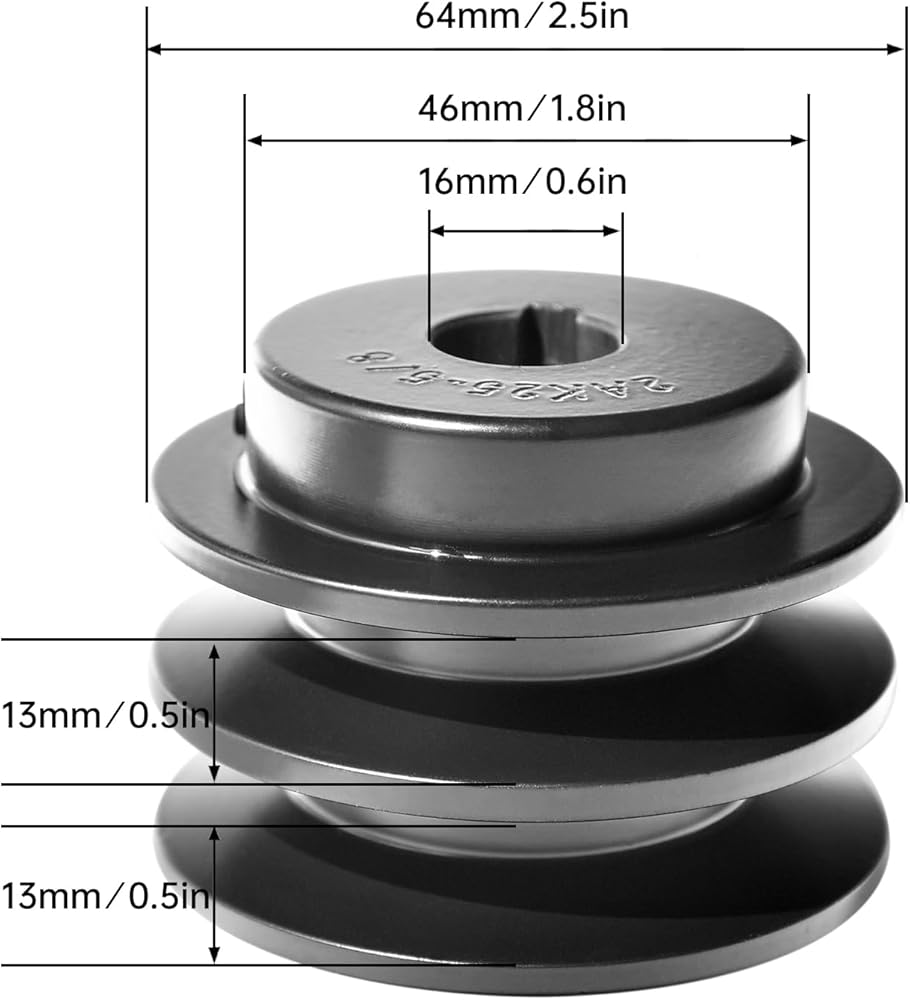 - Pulley Outside Diameter (O.D.): 2.5", 2 Groove