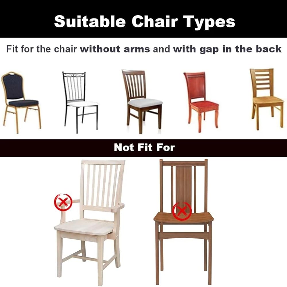 Easy Installation:FUANGUI dining room chair seat covers uses rear-covered design to make it whole and look better. FUANGUI dining chair slipcover is no need to disassemble your seat cushion,first just slip on and then flatten the rear part of the seat and buckle up. easy to install by a few simple steps to fit the chair perfectly.