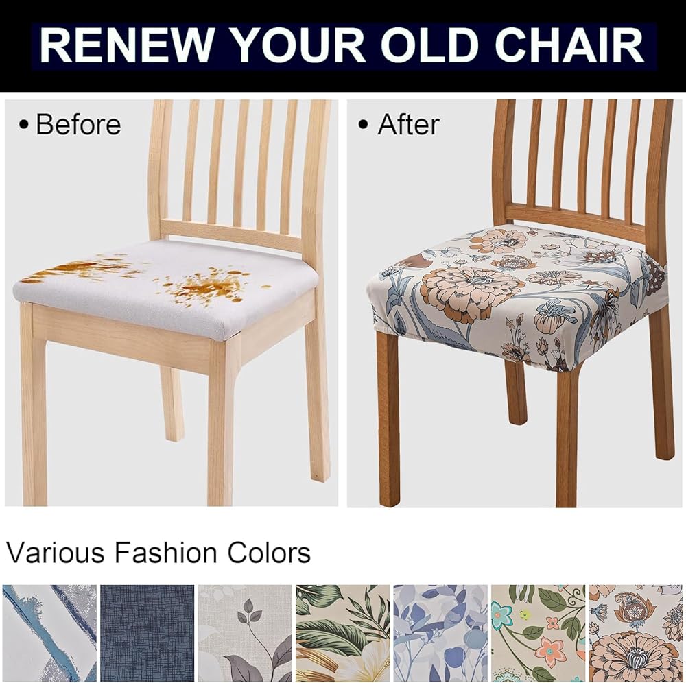 Wide Application:Removable chair seat covers for dining room are great for upholstered chairs in kitchen,dining room,hotel, restaurant,meeting and other occasions.Kitchen chair covers can transform your old chair into brand new.machine wash separately in cold water, easy to cleaning and wash, air-dried easily.