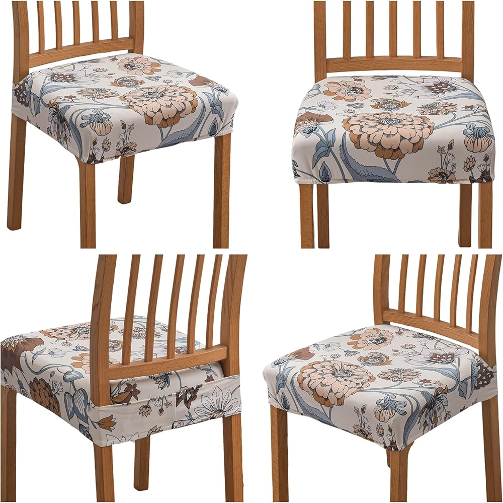 FUANGUI Chair Seat Covers for Dining Room Set of 4, Stretch Jacquard Removable and Washable Chair Covers, Protector Chair Cushion Kitchen Dining Home Slipcovers(4 Pack)