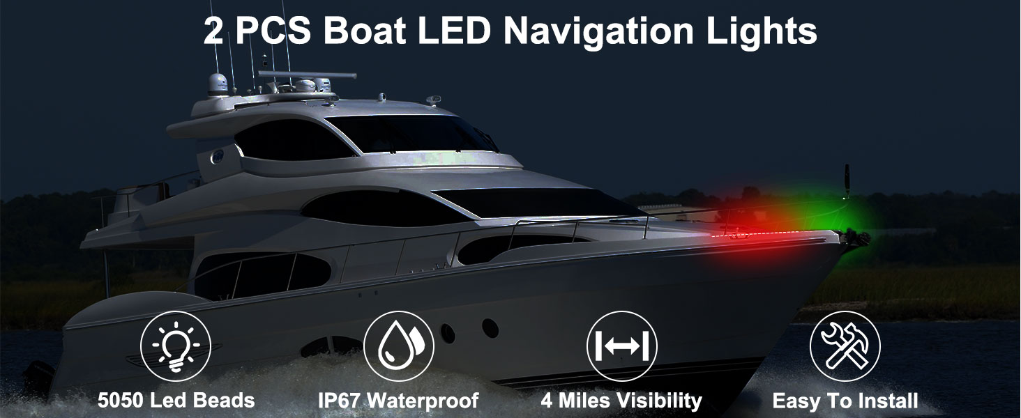 【High Brightness】These boat navigation lights are equipped with 18 imported 5050 LED chips, providing a strong light visible up to 4 miles away. Enhancing visibility for nighttime boating, ensures a safer experience on the water, making navigation more secure and reliable.