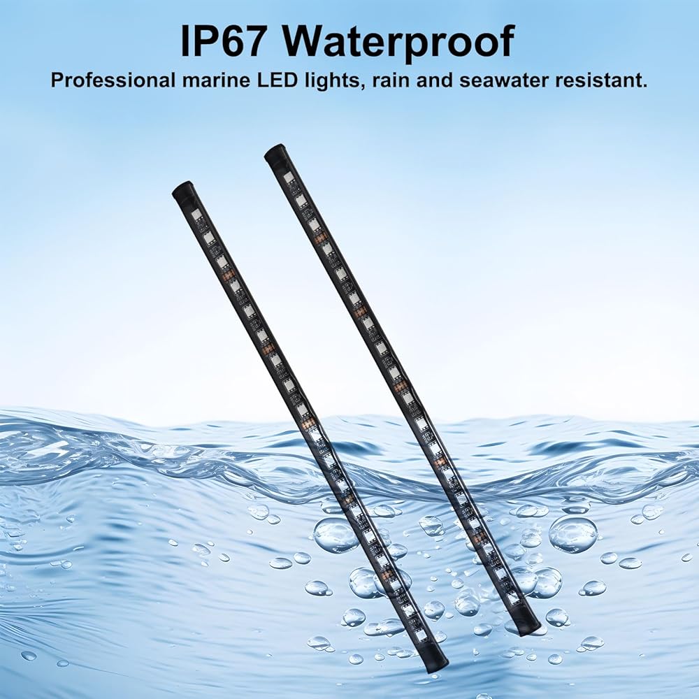 【No Drilling Required】 Due to the robust double-sided adhesive on the strip lights and their flexible design, you can easily mount them anywhere you desire without the need for drilling. Ideal for installation on the boat rail, or above and below the rail.