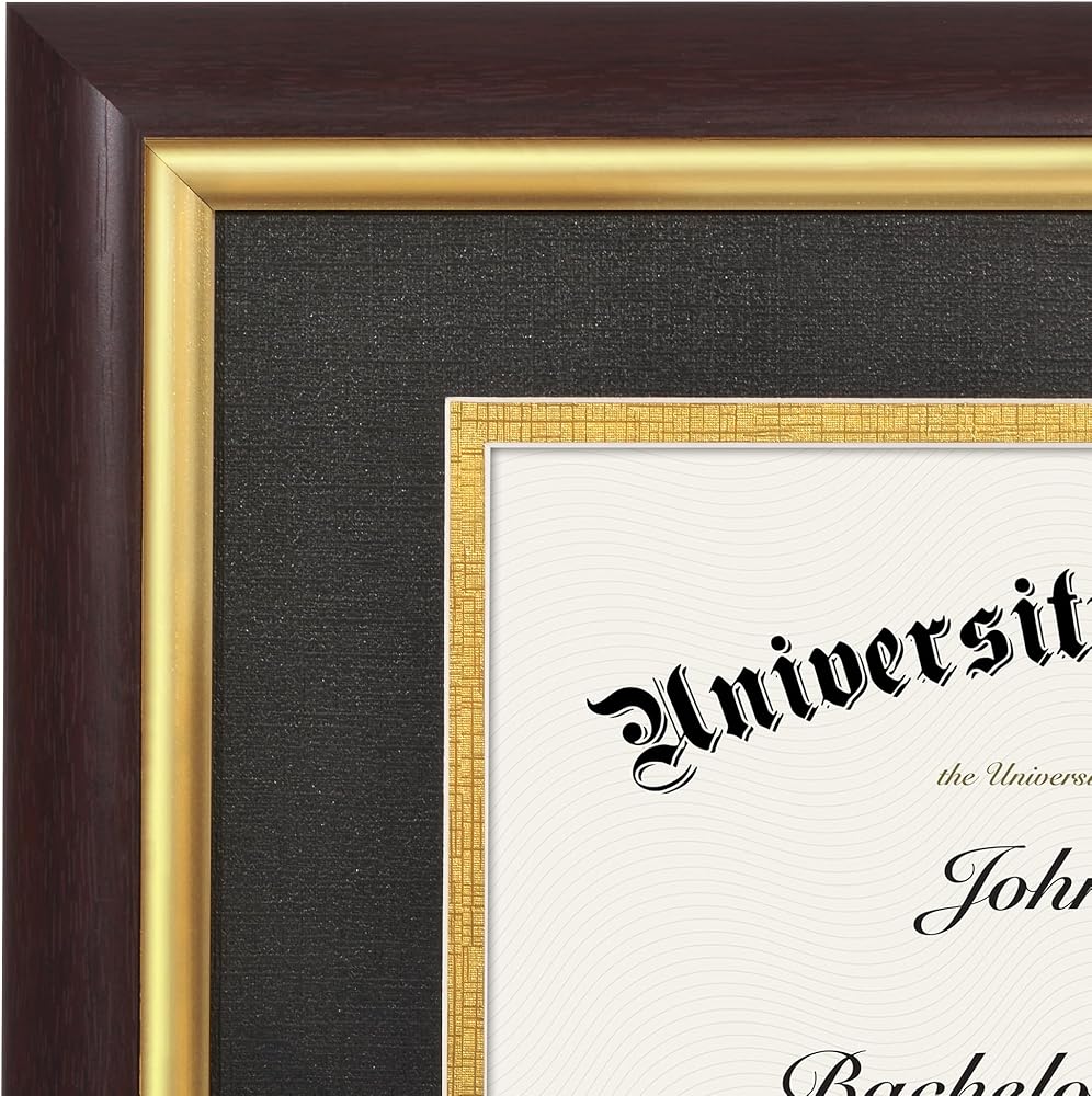 Heavyweight Mat: The mat for these vintage picture frames is a textured, double black and gold mat. Designed to display letter-size certificates or documents. Alternatively, use this as an 8.5x11 picture frame with mat.