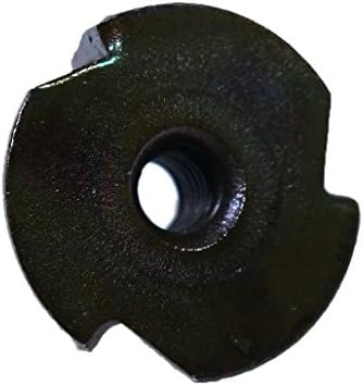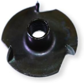 These smaller T-nuts are hard to find in black. These are finish-grade t-nuts, black, 100 per bag. Perfect for thin and medium thick leather, ballistic nylon, and kydex holsters. 1/4" straight barrel, 3 prong, 11/16" flange, 8-32 thread, steel/zinc black.
