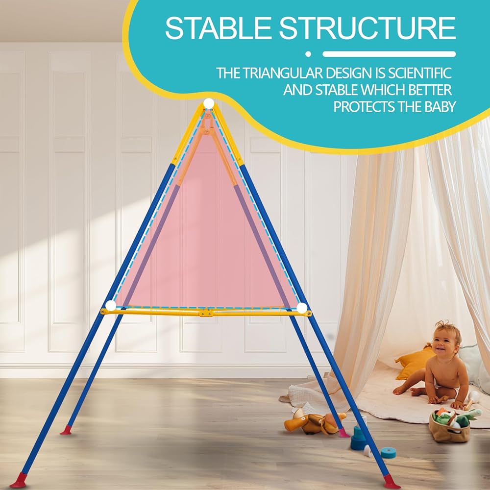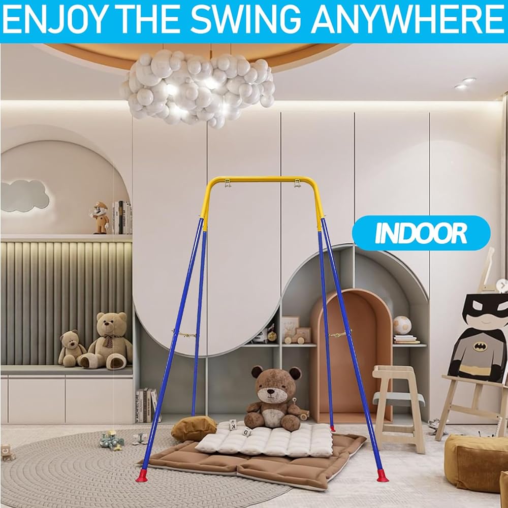 • Our toddler swing stand is a durable and sturdy A-frame design made from robust steel materials, perfect for indoor or outdoor play areas.