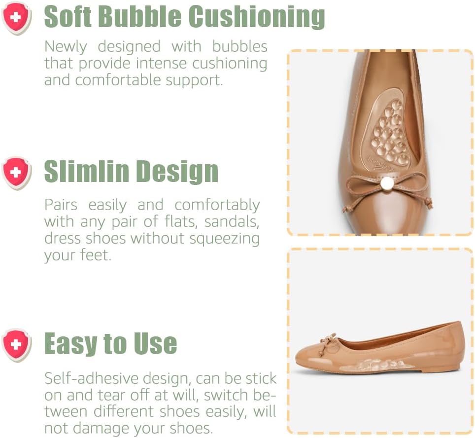 [ Soft Bubble Cushioning ] This gel arch pads is newly designed with bubbles that provide intense cushioning and comfortable support. Compared to the traditional arch pad, this new gel arch inserts will fit your arch better, with more flexibility to accommodate your arch height under your weight.