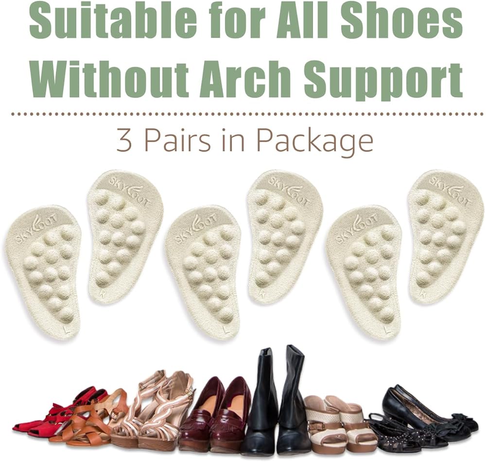 Skyfoot Arch Support Inserts for Flat Feet, Plantar Fasciitis, Arch Insoles for Foot Pain and Pressure Relief - 3 Pairs