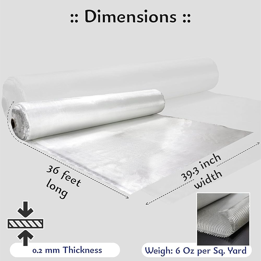 1 Pc Fiberglass Cloth 6 Oz - 39.3 Inches x 36 Feet / 12 Yd Long - E-Glass Plain Weave - Fiberglass Sheet - Fiberglasses Cloth - Woven Fabric for Boat RC Plane Auto Car Surfboard Tub Pool Repair
