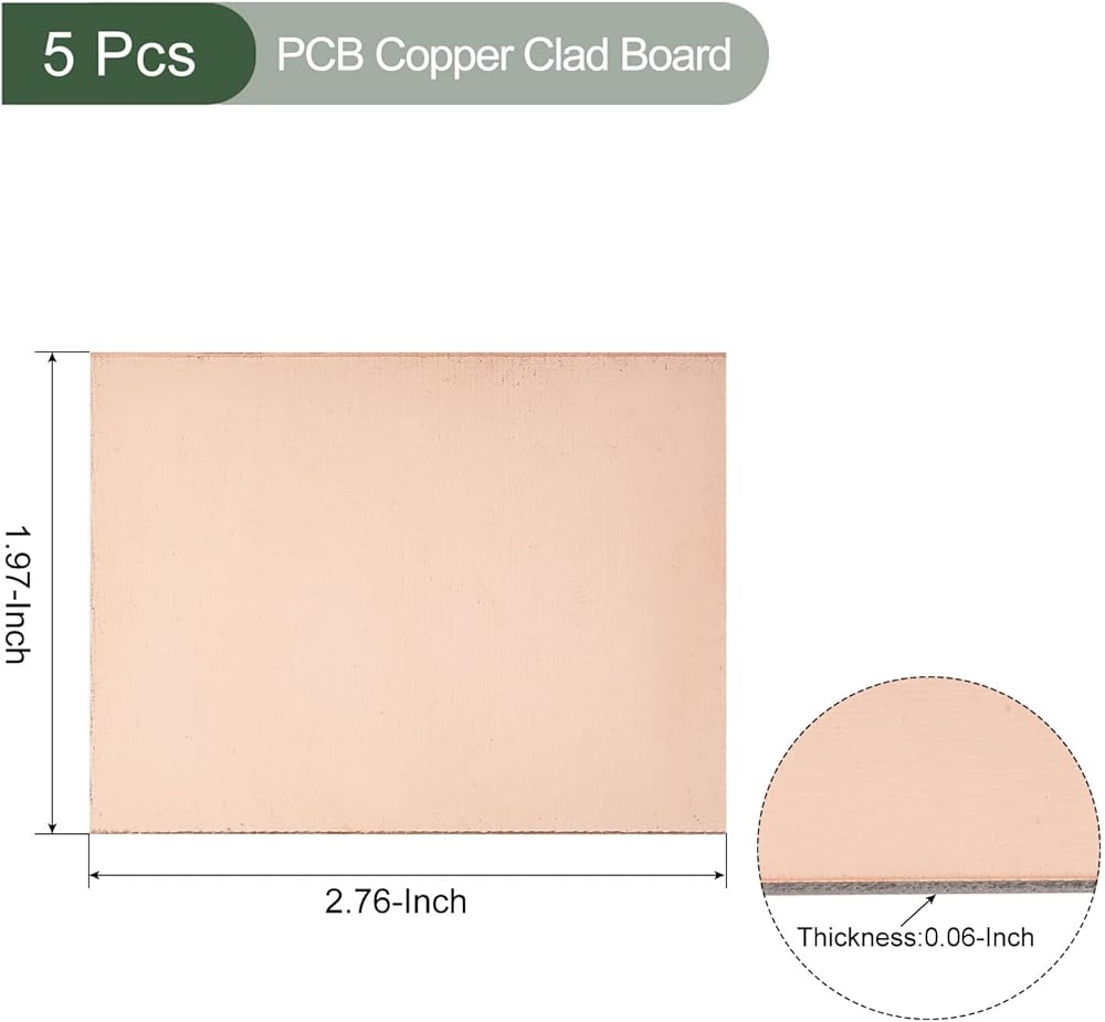 WHAT YOU GET - The package comes with 5 Pcs copper clad board that measures 70mmx50mmx1.5mm(L*W*H).