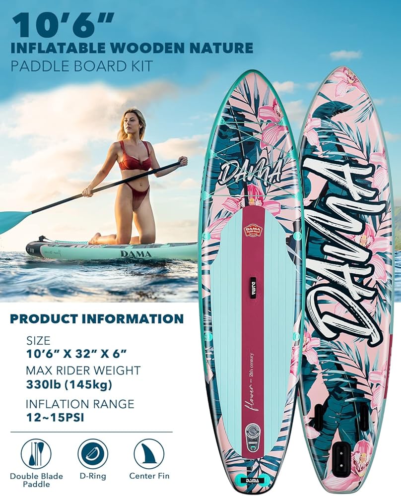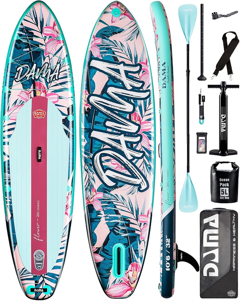 DAMA Stand Up Paddle Boards 10'6"*32"*6" Drop Stitch Inflatable Paddle Board Sup Boards Classic Flower W/Leash, Camera Mount, Hand Pump, for Surfing, Travling, Yoga