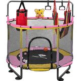 55" Indoor & Outdoor Trampoline for Kids with Enclosure, Toddler Trampoline with Adjustable Gymnastics Bar & Toys, No-Gap Safety Design