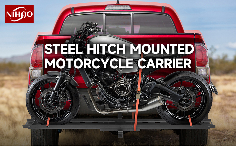 【Durable Construction】Made of heavy-duty steel, this hitch-mounted motorcycle carrier is resistant to deformation. Its surface is coated with black powder, preventing rust and wear even under harsh weather conditions and frequent use. With this carrier, you can conveniently take your bike wherever you want to go.