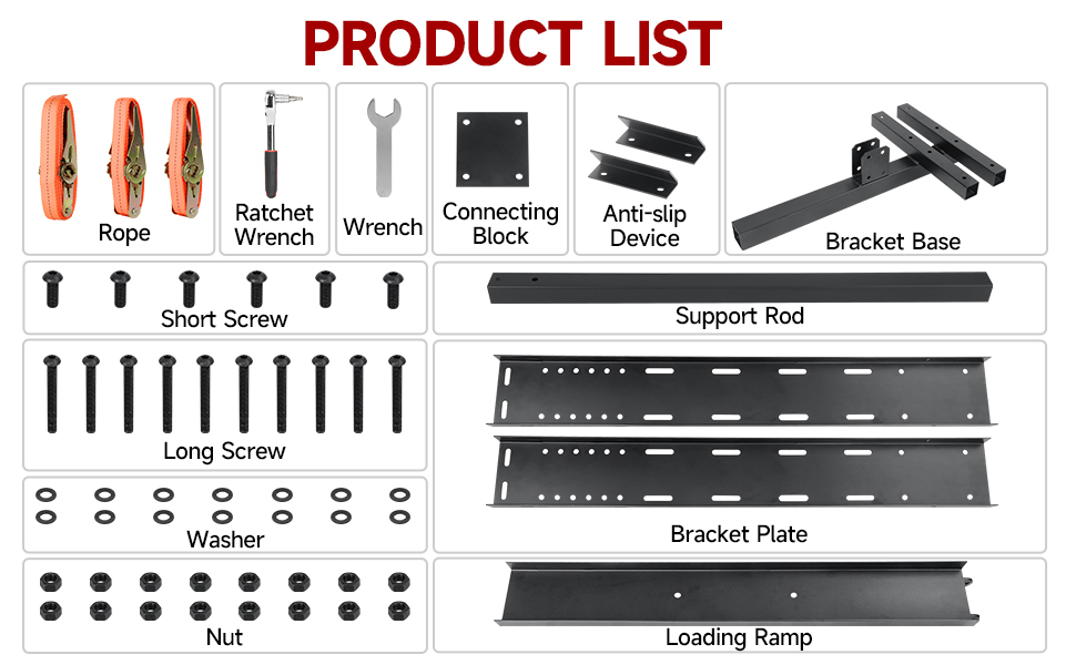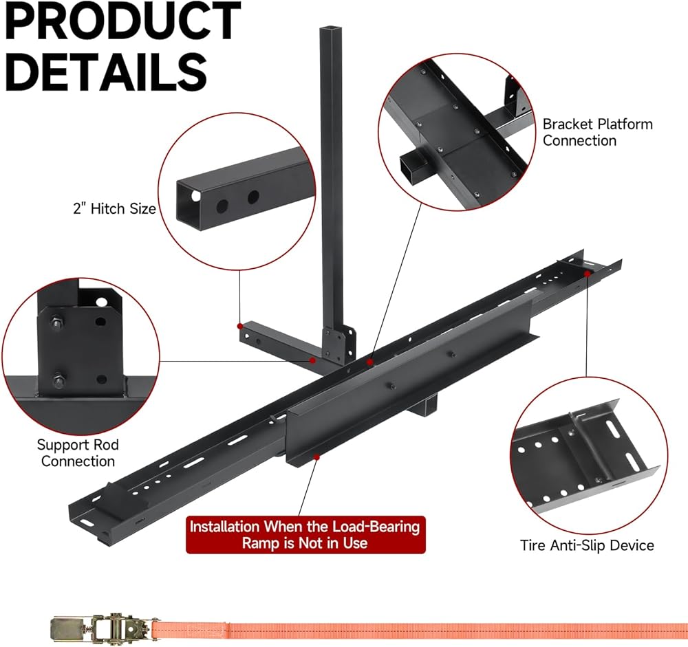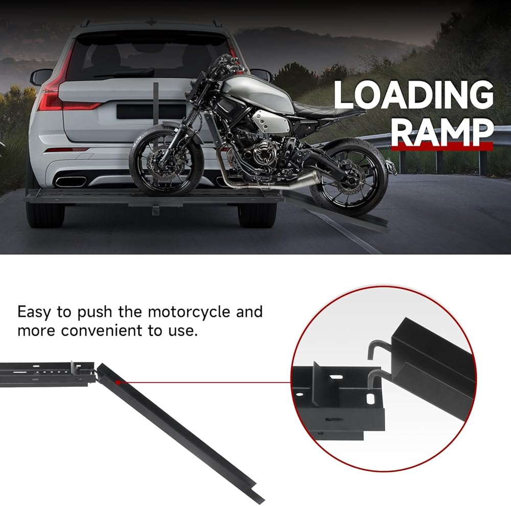 【Convenient Design】The carrier comes with a ramp that facilitates moving the motorcycle onto the carrier. When not in use, the ramp can be attached to the carrier, saving valuable trunk space. Loading and unloading motorcycles becomes simple and quick.
