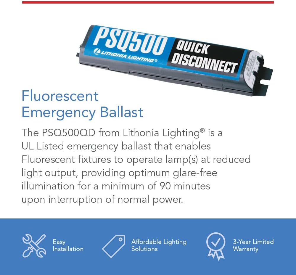 Power Sentry Emergency Battery Back Up, Long Compact and T8 Compatible Fluorescent Ballast with 550 Lumen Output, 90 Minute Emergency Operation, UL Listed (PSQ500QD MVOLT M12)