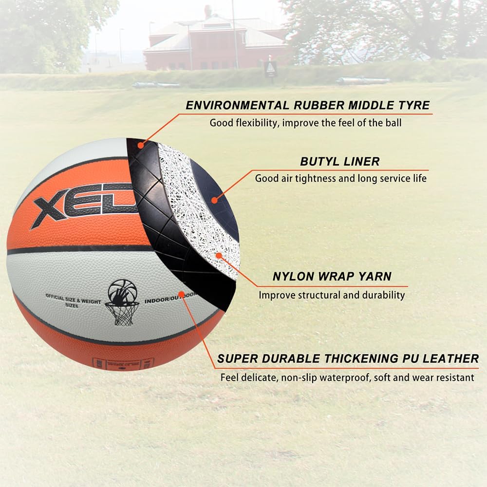 1.XEDGE size 6 basketball set,including one 28.5" basketball, one black carrying bag,2 needles and one pump which can inflate ball.Note: the ball which you receive is deflated.