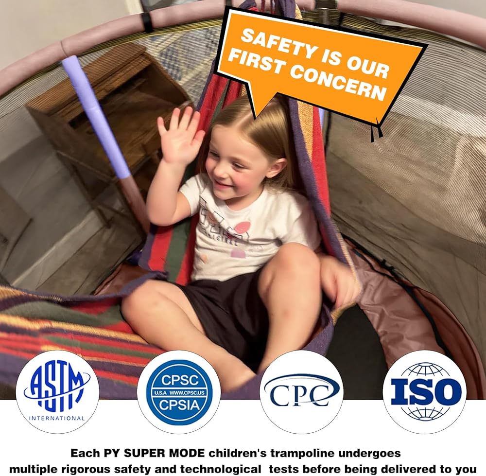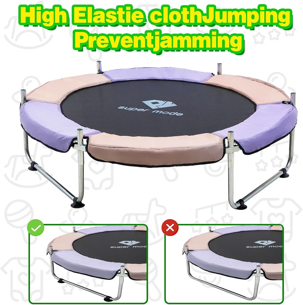 【Stable & Durable Construction】 Made from galvanized steel pipe inside, the baby trampoline is solid and steady enough to hold up to 440 lbs. In addition, the U-shaped feet equipped with two enhanced silent suction pads, are used to prevent rolling effectively.