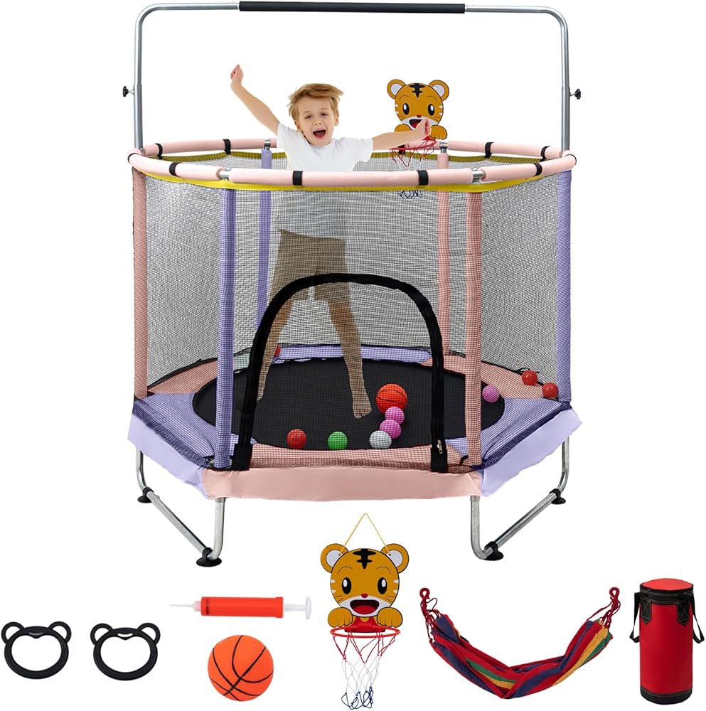 【Safety Upgraded】The 60'' toddler trampoline has a 360° wrap-around environmentally friendly three-layer thickened safety pad, thickened encrypted safety net, and upgraded safety material foam. Suitable for kids aged over 8, so that children can enjoy the fun of jumping.