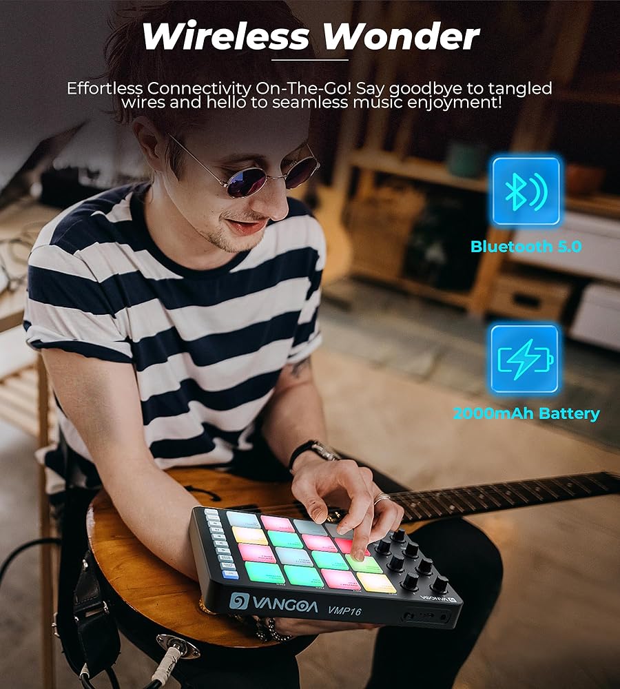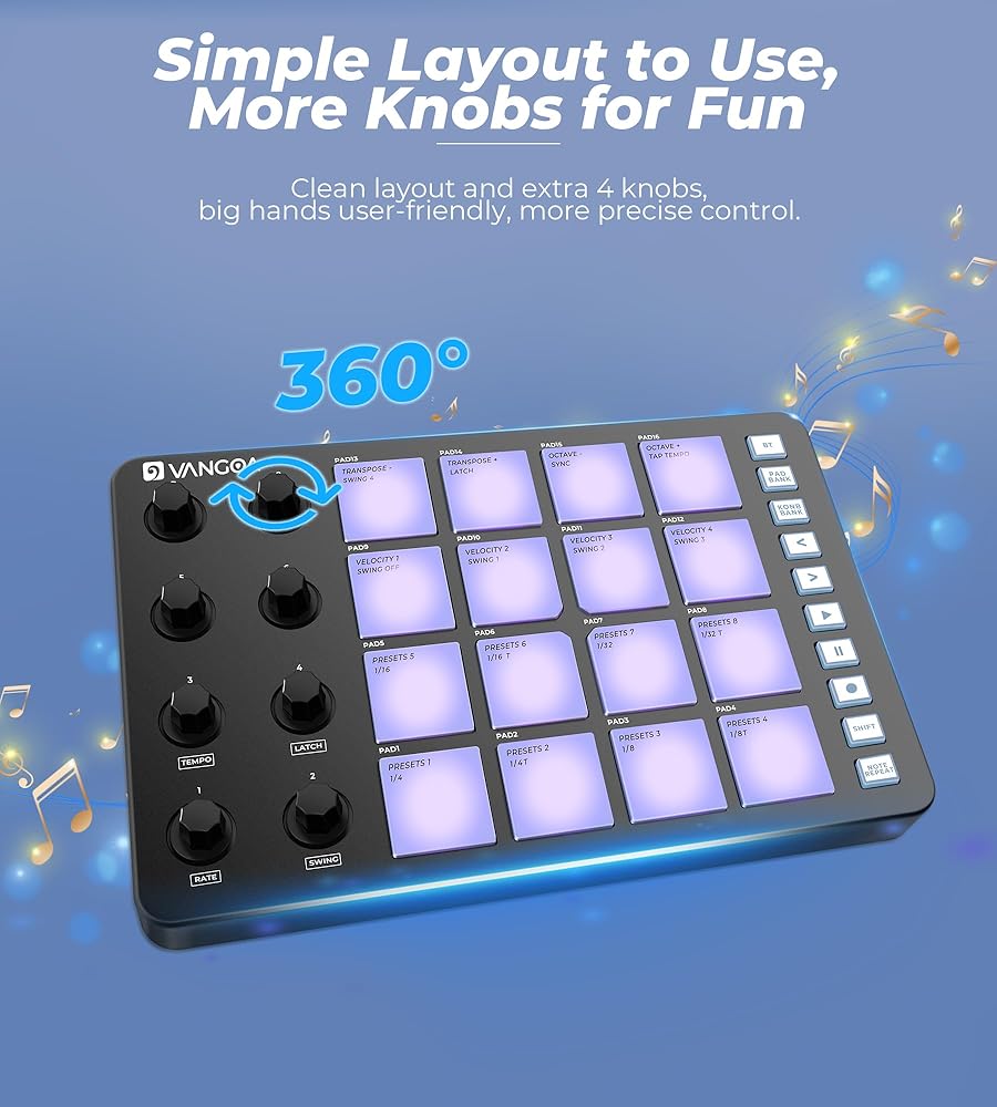 🎶Rhythmic Revelations Await- Step into the beat making realm with the Vangoa MIDI Pad Beat Maker Machine! Featuring 16 vibrant RGB pads that respond to your touch, this portable powered midi pad is a playground for music production beginners, adults, teens and seasoned pros alike.