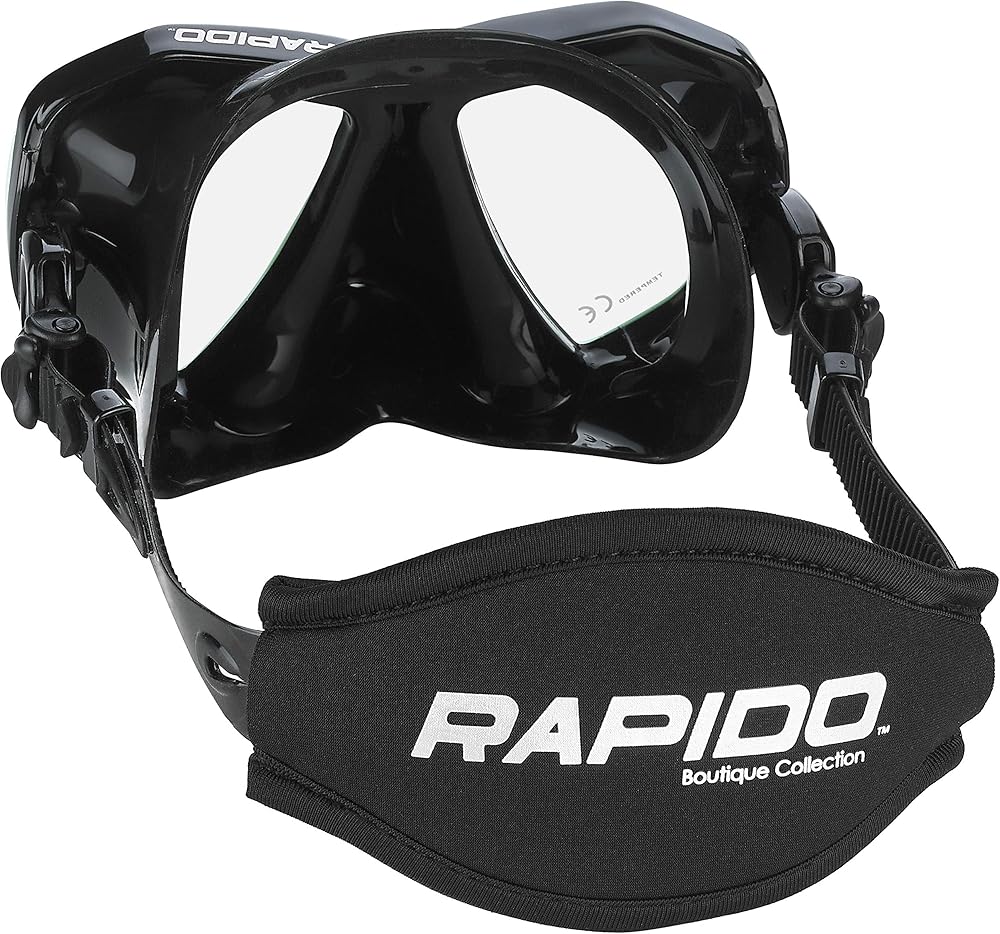 MASK FEATURES: Unique Rigidity Allows Perfect Seal and Comfort, High Quality Silicone Skirt, Dual Tempered Glass Lens Design, Integrated Neoprene Mask Strap Pad for Added Comfort, Easy to Adjust Swivel Buckle System.