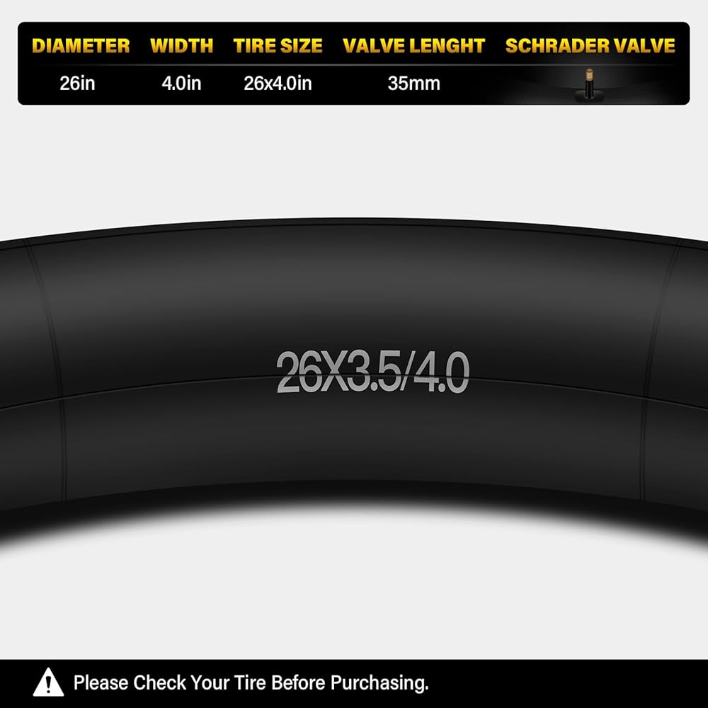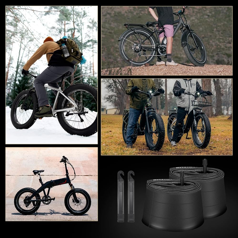 Inner Tube: 26x1.95 Inch 2-Pack Electric Bike Tubes AV 35mm Schrader Valve, Premium Butyl Rubber Puncture Resistant Replacement Tubes with 2 Tire Levers
