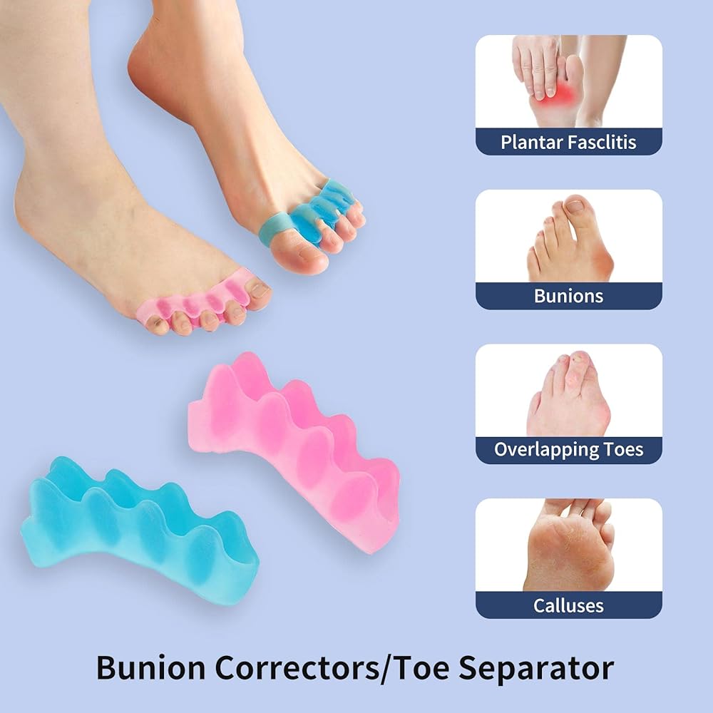 Toe Separators for Women/Men (4 PCS), Soft Toe Spacers Bunion Corrector for Women/Men, Gel Toe Spacers for Foot Pain Relief (Pink/Blue), Universal Size