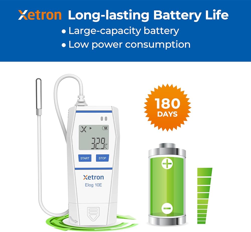 【Extended Battery Life】We use high-capacity batteries that can last up to 180 days when recording data every ten minutes at a temperature of 77℉. Plus, with the Xetron software, you can set the recording interval (10S-24H) to meet your specific needs. Perfect for long-term monitoring in local environments.