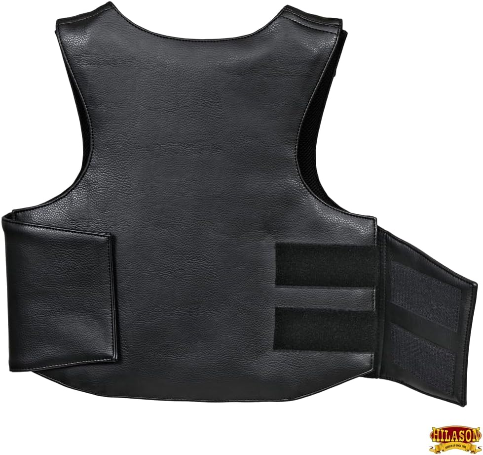 This is one of the most reliable, versatile and affordable rodeo protective vest in the market today. This horse riding vest has some of the most unique features that are rarely found in some of the comparable top brands too. HOW TO MEASURE: The leather vest is made to fit a little snugly but not too tight. This youth rodeo vest is one of the most reliable, versatile and affordable protective vest in the market today. It combines utmost comfort and fit with excellent shock absorption and impact protection. It has breathable lining for ventilation.It is lightweight yet durable and shock-absorbing. Youth rodeo vest lightweight yet durable and shock-absorbing. Adjustable Hook and Loop fastner fastners at the shoulders and sides for perfect fit and adjustability. Comfortable design for ease of movement youth leather vest front and laced side adjustment provides an easier fit. Tapered front aids in movement of the rider. Elongated lower back padding results in better protection for the tail bone. Unisex easily cleanable. Quick Release Velcro Fastener. Easy to clean. HURRY UP!!! Click the """"""""""""""""""""""""""""ADD TO CART""""""""""""""""""""""""""""button as soon as possible to start using our goods.
