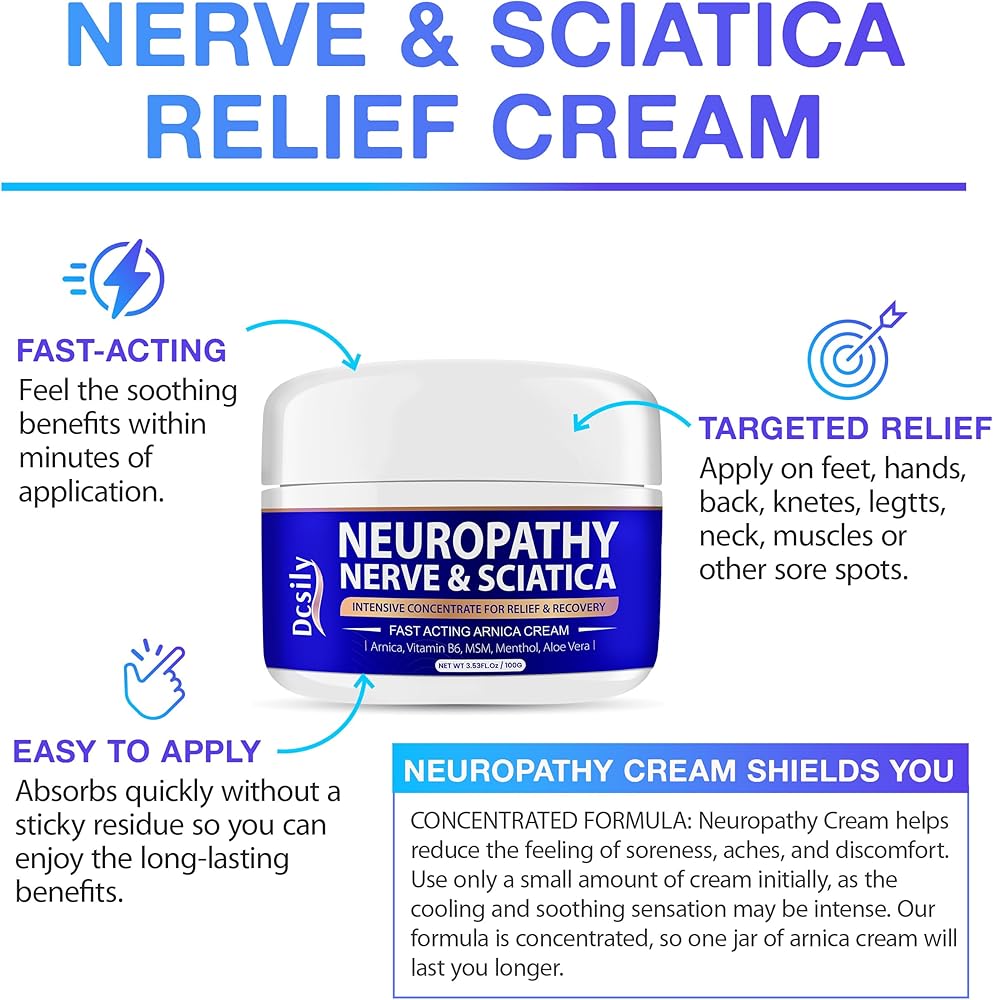 • Arnica Cream Neuropathy Cream Nerve Relief For Hands, Feet, Legs, Back, Neck.