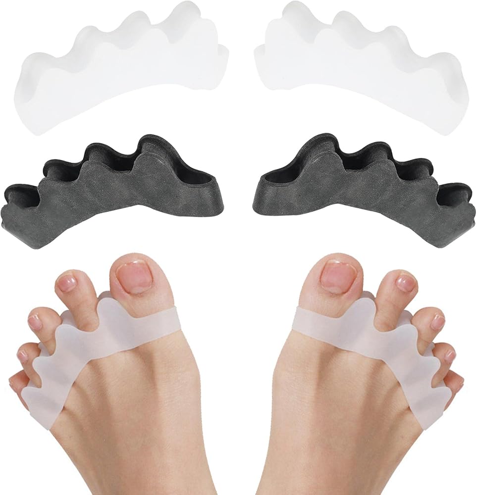 Toe Separators for Women/Men (4 PCS), Soft Toe Spacers Bunion Corrector for Women/Men, Gel Toe Spacers for Foot Pain Relief (Black/White), Universal Size