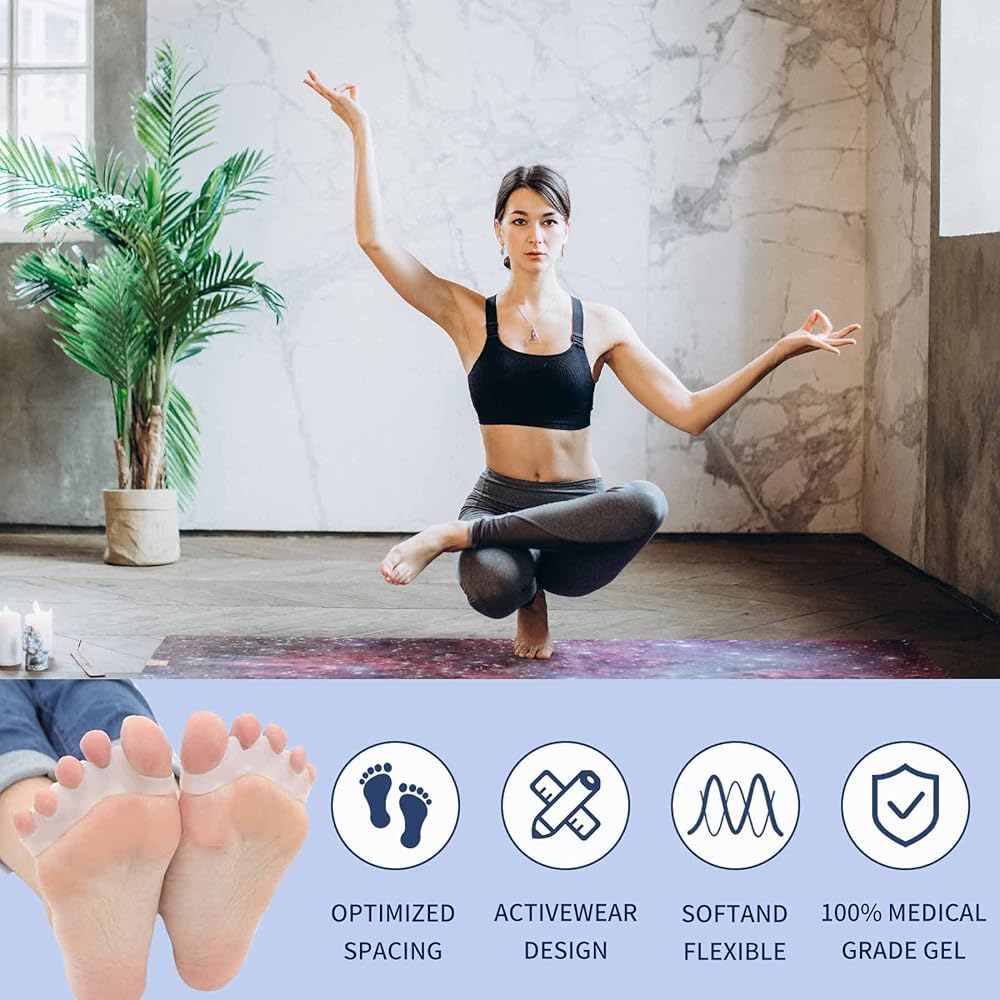 [ACTIVEWEAR DESIGN] Each box contains four (4) gel toe separators. Please wear them for 30 minutes a day, then gradually increase that time to 2-3 hours as your feet become used to them. These gel toe spacers can be worn in loose shoes, it also suitable for workouts like yoga and barefoot training.