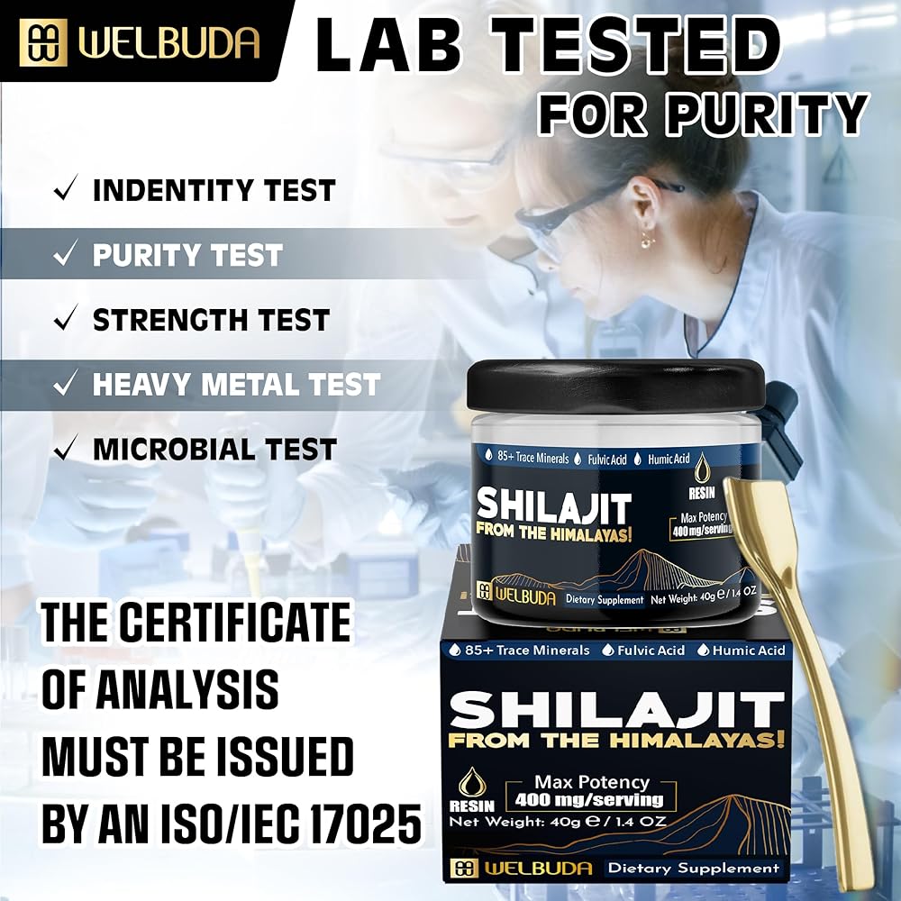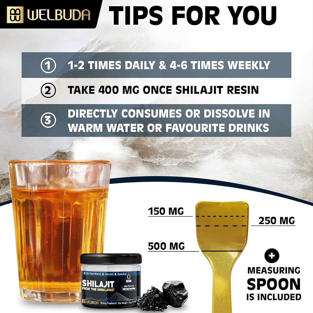 🗻 Commitment To Safety & Quality: We take great pride in the fact that Pure Himalayan Shilajit Resin Supplement is made entirely of natural components that have been studied and successfully used throughout the world. It is also non-GMO, gluten-free. All our products are third-party tested to ensure quality and purity by a USA-verified Lab.