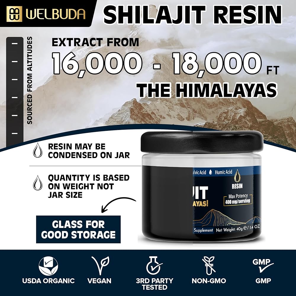 🗻 Potent Benefits of 400mg per Serving: Shilajit Resin Organic is from the Himalayas at 16,000-18,000 ft altitude. Provides over 85 types of premium sources as well as supports the immune system, cognitive health & energy production; For those seeking assistance for their well-being, our shilajit is ideal.