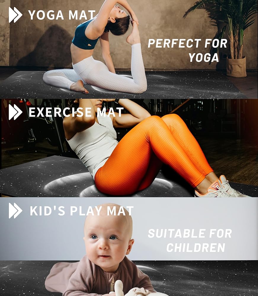 ▨DOUBLE NON SLIP DESIGN -The design of anti-skid texture on both sides and texture on the back, features good cushioning and optimal grip. The yoga mat non slip shows the excellent anti-slipping on all kinds of grounds, for example, wood floor, cement floor,tile floor. keep you from slipping around. You can safely do any poses on the non slip yoga mat without worrying about injury!