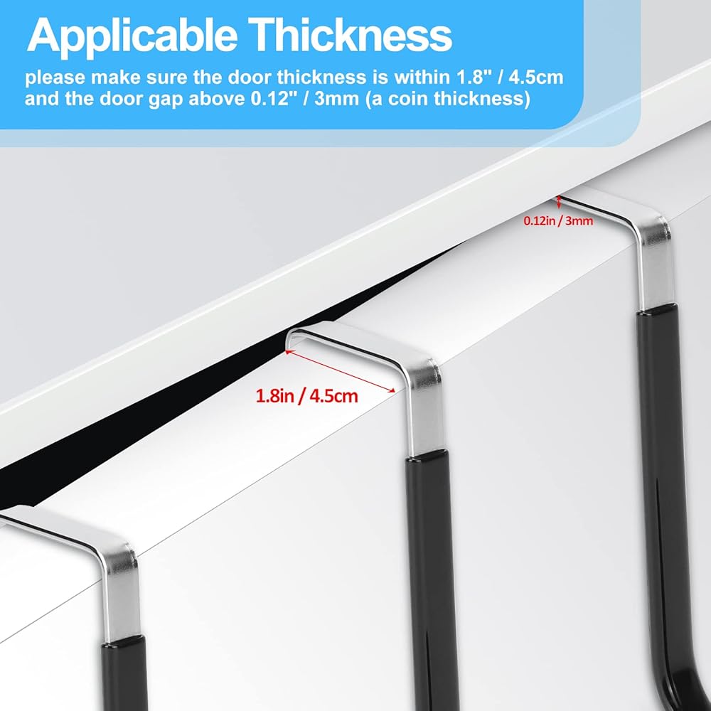 This over the door hanger hooks fit most of doors which widths range of 1-2inches.Please measure your door before purchasing.