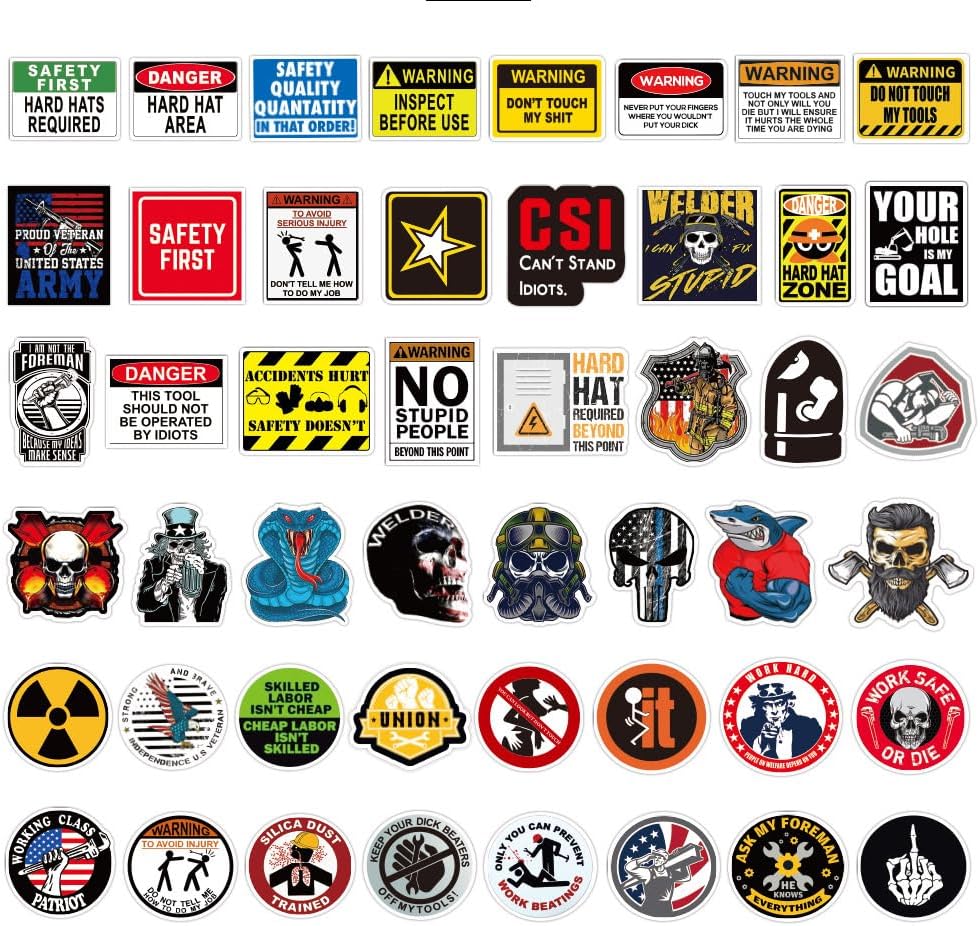 Industrial Design: Specifically designed for industrial use, these stickers are perfect for personalizing welding, oil field, firefighting helmets, mechanic, welder, grinder, machinery, engine covers, toolboxes, construction, scaffolding, garage, lunch boxes, kayaking, drilling rigs, trucks, and more.