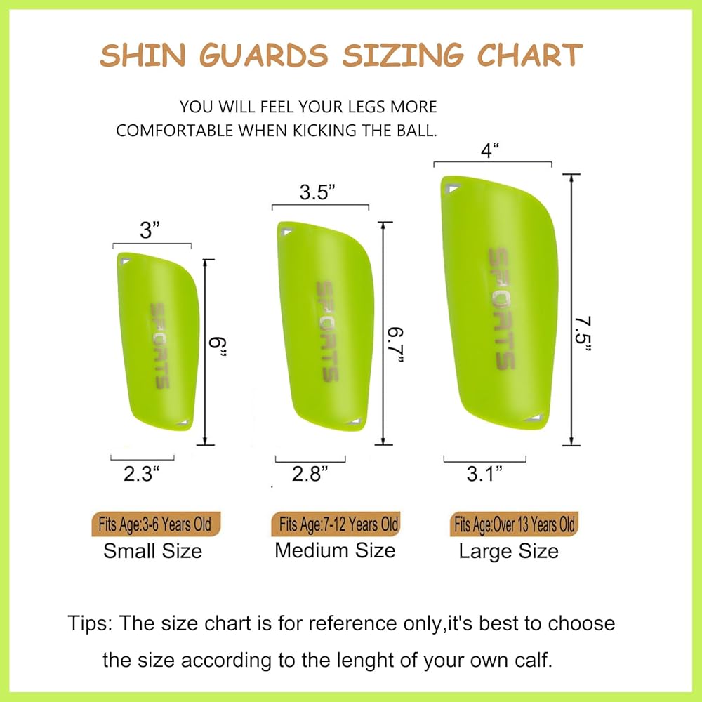 ⚽Soccer Practice: Shin guards & shin guards sleeves in three sizes SML Designed for soccer players of more ages, S size for below 5 years old, M size for 5-13 years old, L size for 13+ years old teenagers & adults, bright color bringing you a bright mood and making you more outstanding in the Soccer practice.