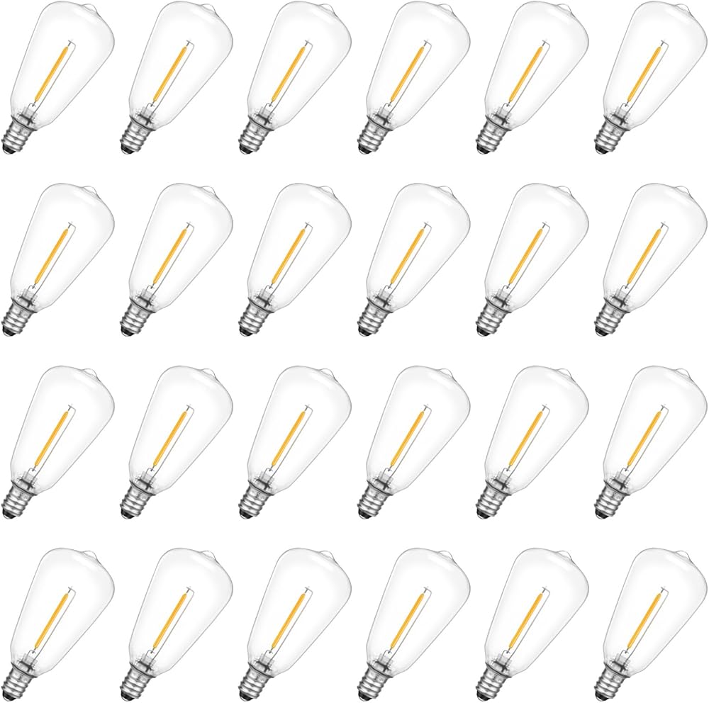 Warm White ST38 LED Light Bulbs: 1.5inches ST38 LED replacement light bulbs, 2200K Warm White Bring you a relaxing and romantic ambiance, 25 pieces per pack.