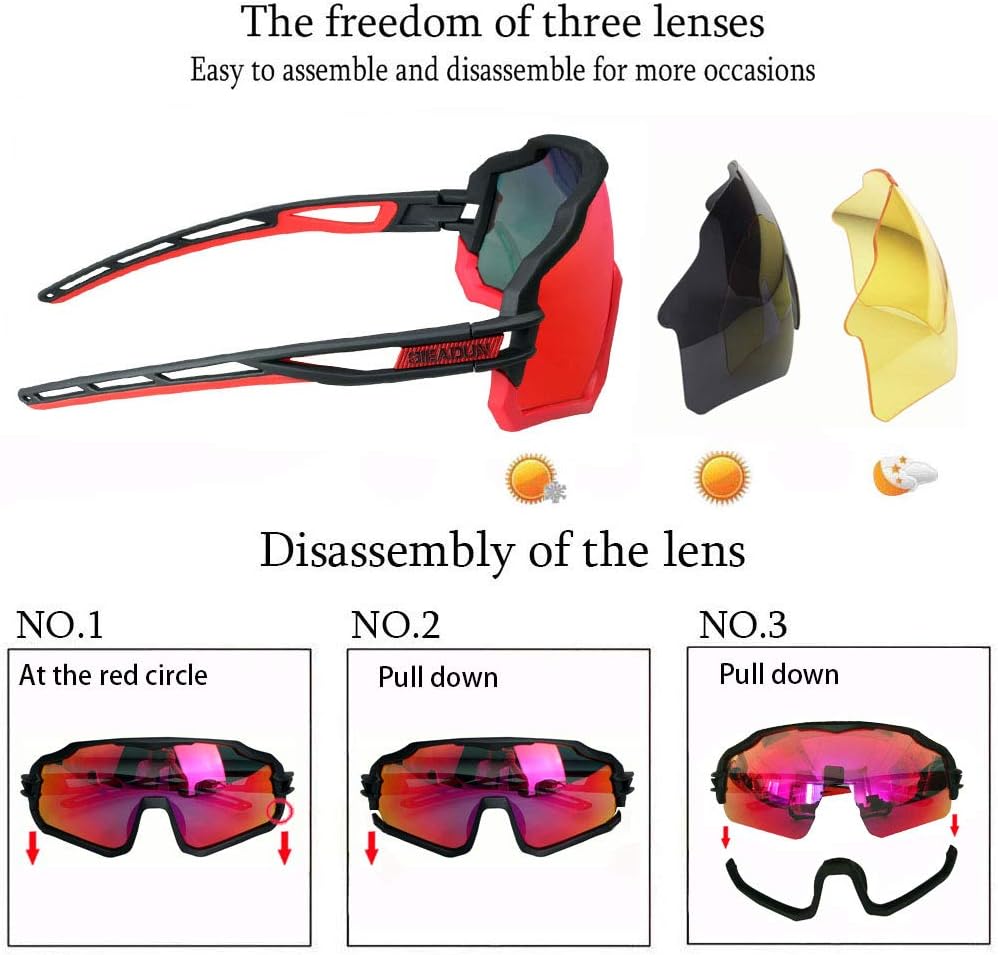 Cycling sunglasses use TR90 frame, which is lightweight, flexible and impact resistant. Soft rubber nose pads can reduce the pressure on the nose.