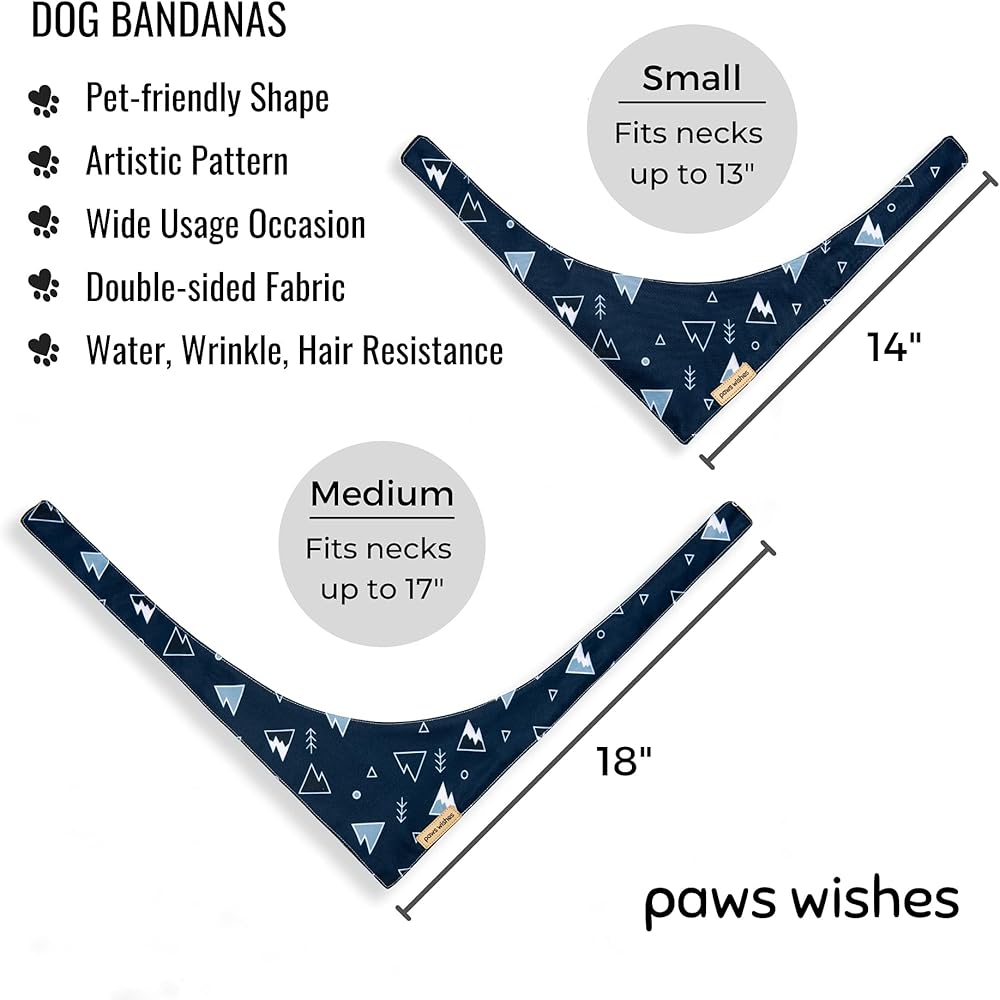 Comfort Wearing: Your pets' satisfaction is our top priority! The Paws Wishes bandanas have a special U-curved design to fit their natural neckline. Easy to tie and fit for their most comfort. The Medium size fits necks up to 17 inches