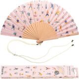 FEATURES - The open fan is 16.7 inch long and 9 inch high. When closed it takes up little space, so it is ideal to carry in your bag and not take up space. Moreover, as it is made of wood and textile, it weighs less than 100 grams..