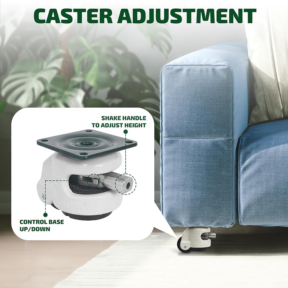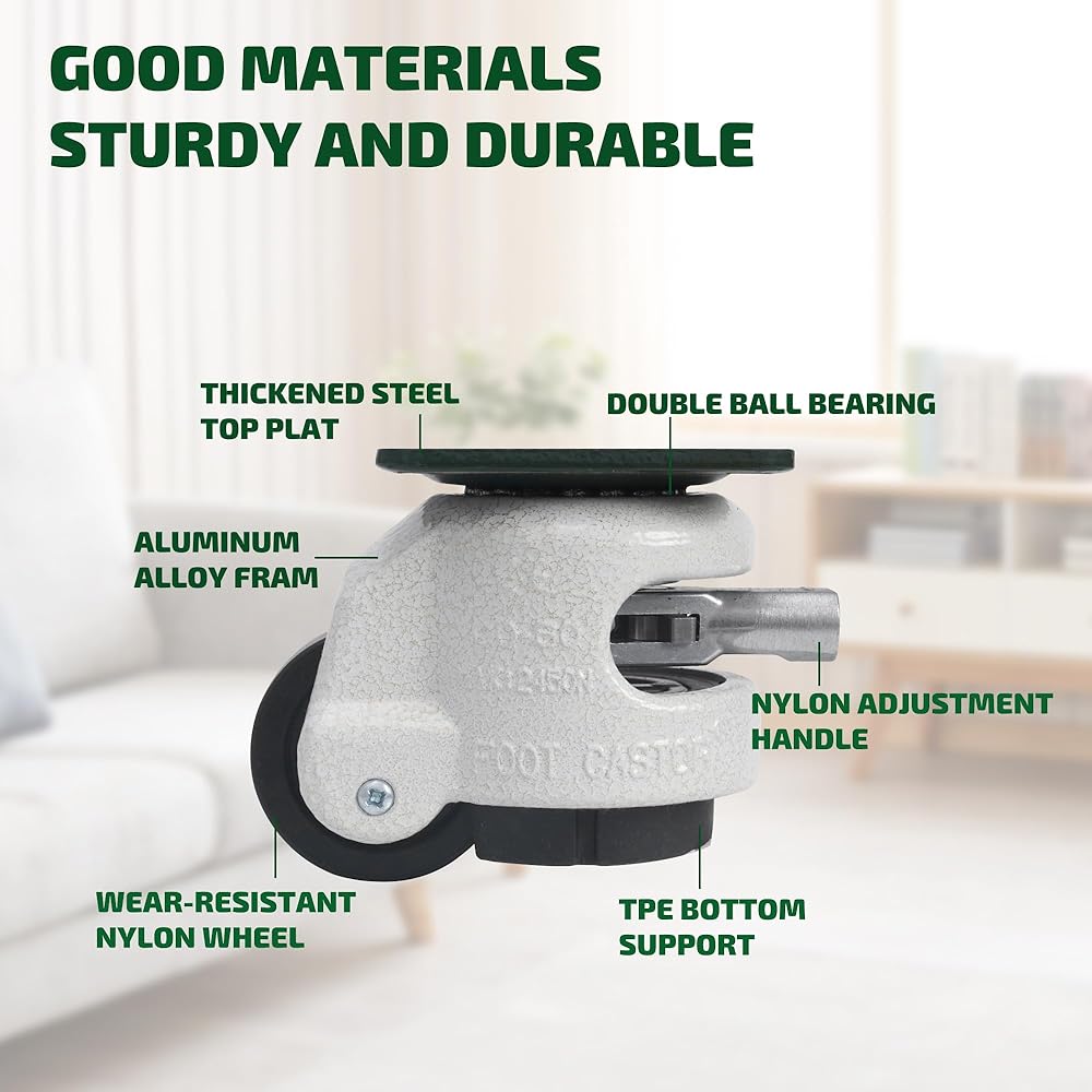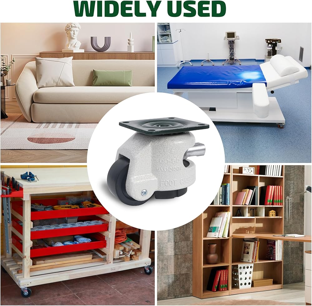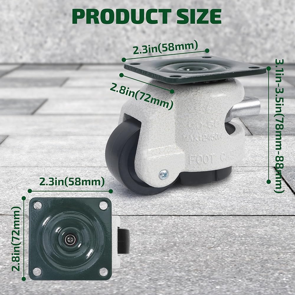 【Load-bearing Capacity】 The load-bearing capacity of the leveling casters is 550lbs per leveling caster and 2200lbs for a total of four retractable caster wheels, which is enough for you to move most of the equipment without accidents. They are designed for long service time.