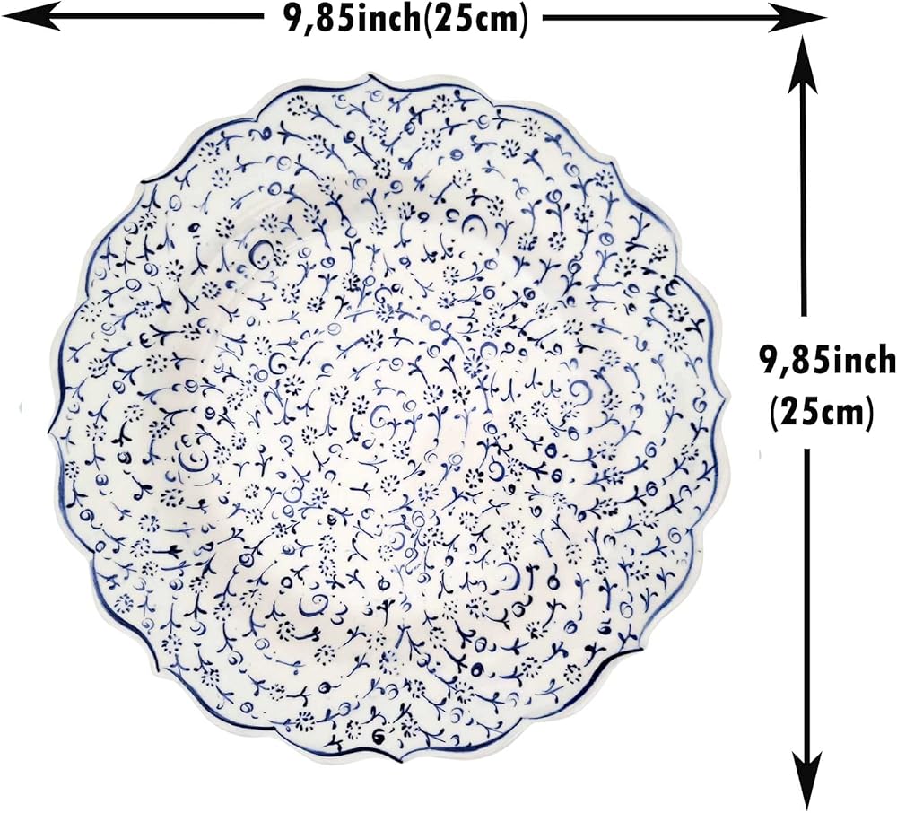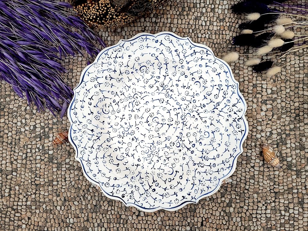 Little Embossed hand painting Handmade plate. The patterns on it were meticulously processed. It protects the color vitality and texture for many years. A stylish product that you can give to your loved ones and friends. Because of the handicraft,there may be some differences in colors and patterns. This is a handicraft based on manifacturing of bowl, dish, plate, vase, pitcher etc or decorative objects after being fired at 950 – 1000 oC by sub glazing technique with applications of traditional figures drawings and painting on them, following shaping after praparation of the earth with semi valuble quartz. At the same time; goods decorated by colorful decorations and figures, with one side glazed which are used in decoration of wall tiles, porcelain, plates and ceramics are called “tile”, and this decoration work is called “art of tile”. Briefly tile is; mixing of some clay, dense quartz and contributory minerals like kaolin and feldspar, and then not only being decorative, but also their presentation to your table, after the figures applied on like sauce bloomed like flowers in fire.