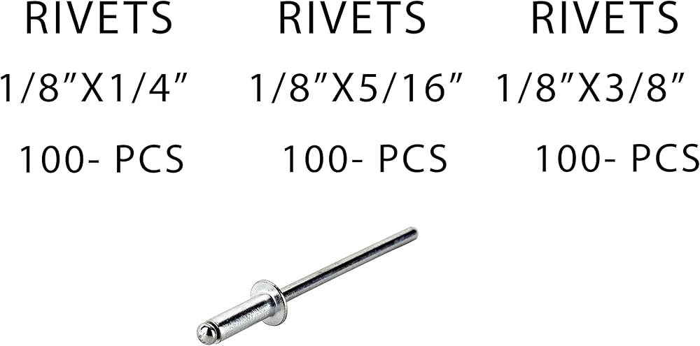 The 300 pieces Aluminum pop Blind rivet kit was designed with some of our most popular sizes to make the perfect package for any riveter. The kit features 300 pieces of 3 of our most popular sizes, all organized and clearly labeled in a durable compartment box for easy storage and identification at a glance. All rivets in this kit feature design making them corrosion and rust resistant to keep your projects looking great for years to come.