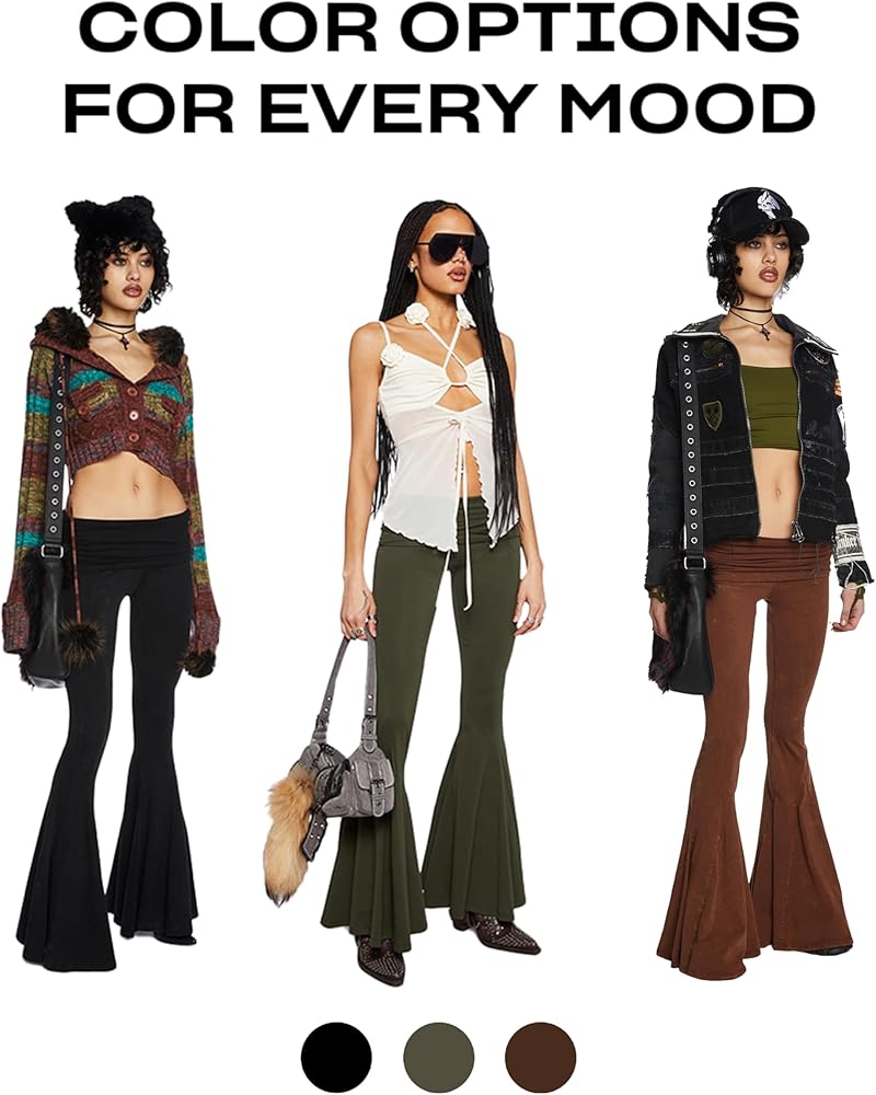 Flattering Design: Features a foldover waistline and flared leg silhouette, providing a trendy low-rise fit that enhances your figure.
