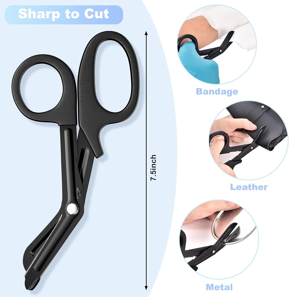 [ Comfort Grip Handles ] High-impact plastic handle, ergonomic grip for left and right hand long-lasting use. Ergonomic, contoured, soft handles enhances comfort and control during use and allows for easier cutting.lighter, stronger and sharper bandage scissors, more comfortable