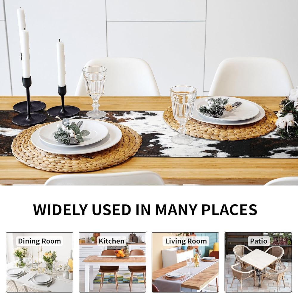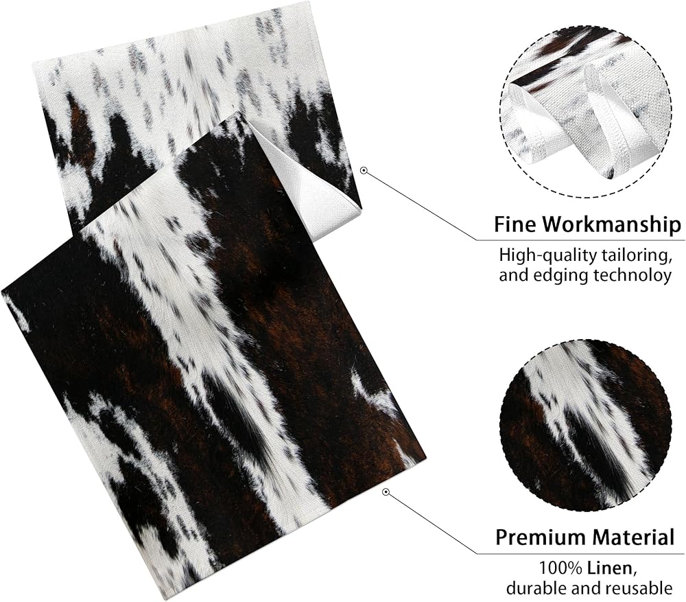 The table runner with farmhouse cowhide pattern, which is fade-resistant and durable, well made and suitable for daily use.