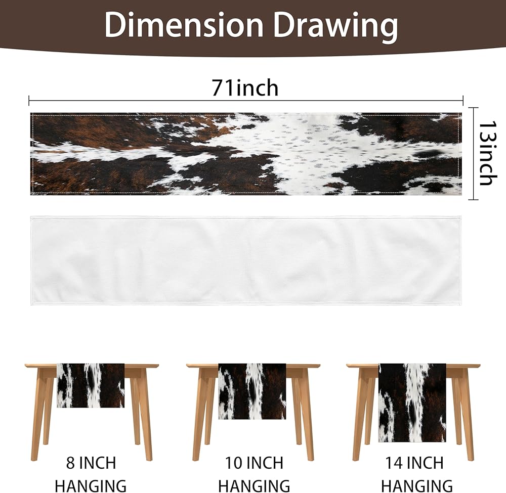 Kitchen Table Decorations: These brown & black & white cow print farmhouse table runner in size of 13x71 Inch , features a single-sided printing design with fresh colors, clear printing and is not easily faded. The modern western style fits a variety of kitchen dining table decor.