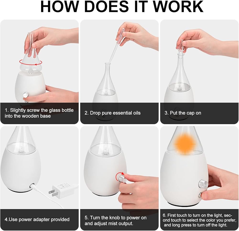 【NATURAL】 Please Uses ONLY pure essential oil. Do not add water, base oil or unknown essential oil, because it can damage the base or the glass tube.