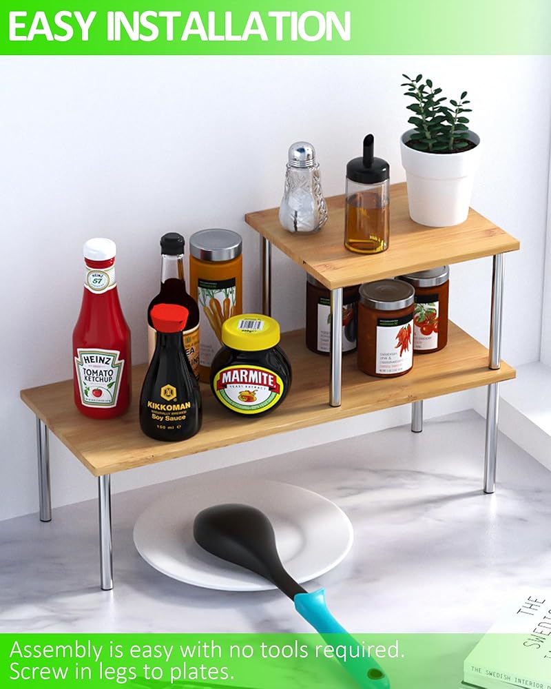 2-Tier Bamboo Corner Storage Rack Organizer Maximize Your Space. Upgrade Your Bathroom or Kitchen