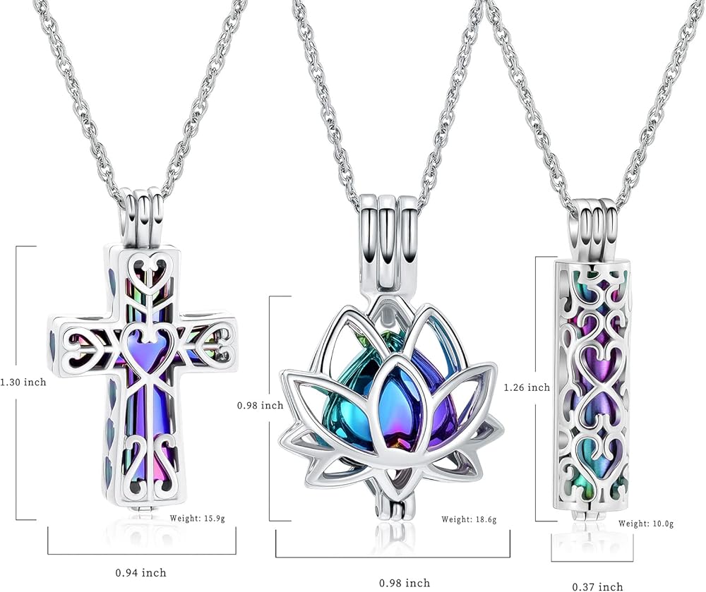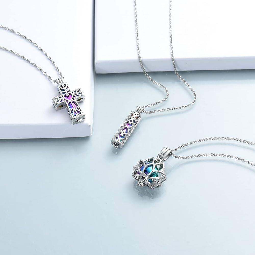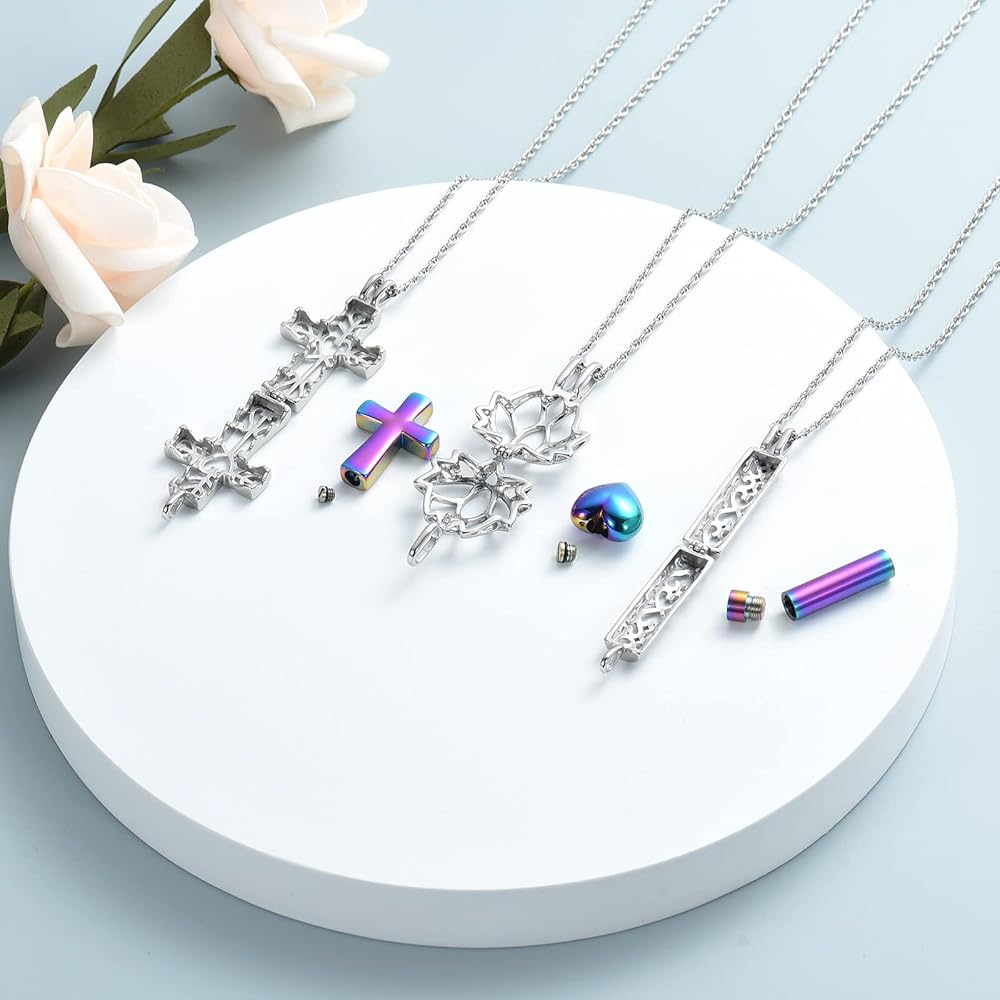 • 【Cremation Jewelry for Ashes】3 pieces of cremation urn necklaces in 3 different styles,Cross urn,Lotus Heart urn,Cylinder urn for replacement, to meet your different matching needs.